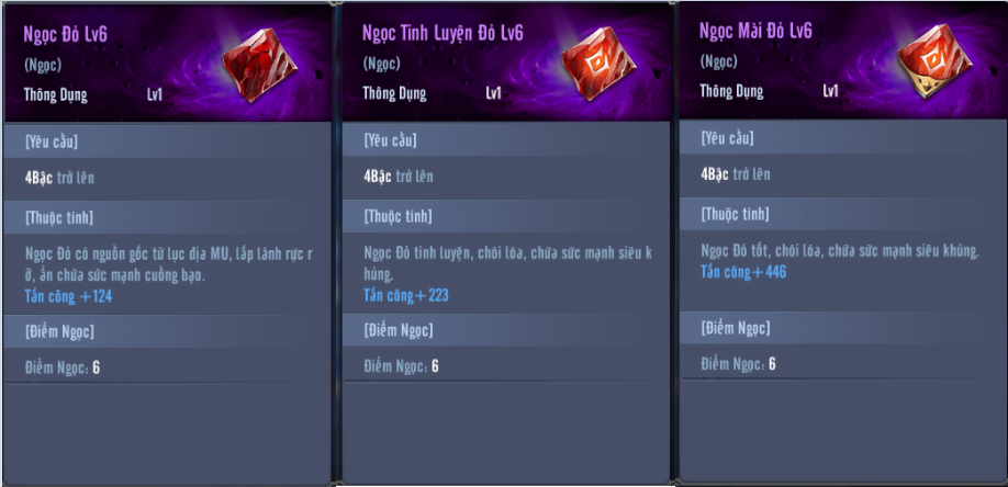 - Ngọc Tinh Luyện và Ngọc Mài đều có thể ghép như Ngọc thường.