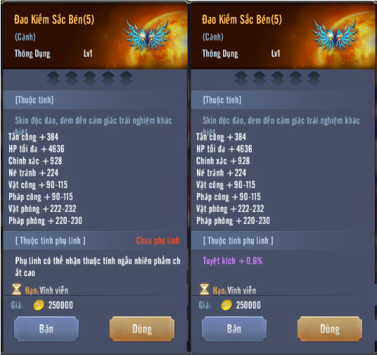 - Thời trang sau khi phụ linh sẽ xuất hiện 1 dòng thuộc tính ngẫu nhiên. Phụ linh cần có Khế Ước, người chơi có thể dễ dàng tìm thấy và mua tại Shop.