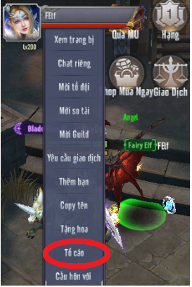 - Cách 2: Chọn người chơi trên bản đồ, bấm vào Avatar chọn mục “Tố Cáo”