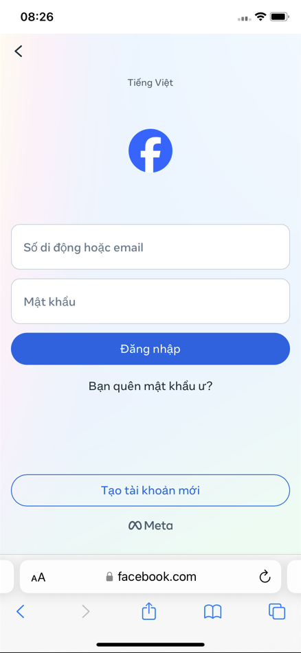 Bước 2: Đăng nhập Facebook trên trình duyệt Safari của thiết bị IOS