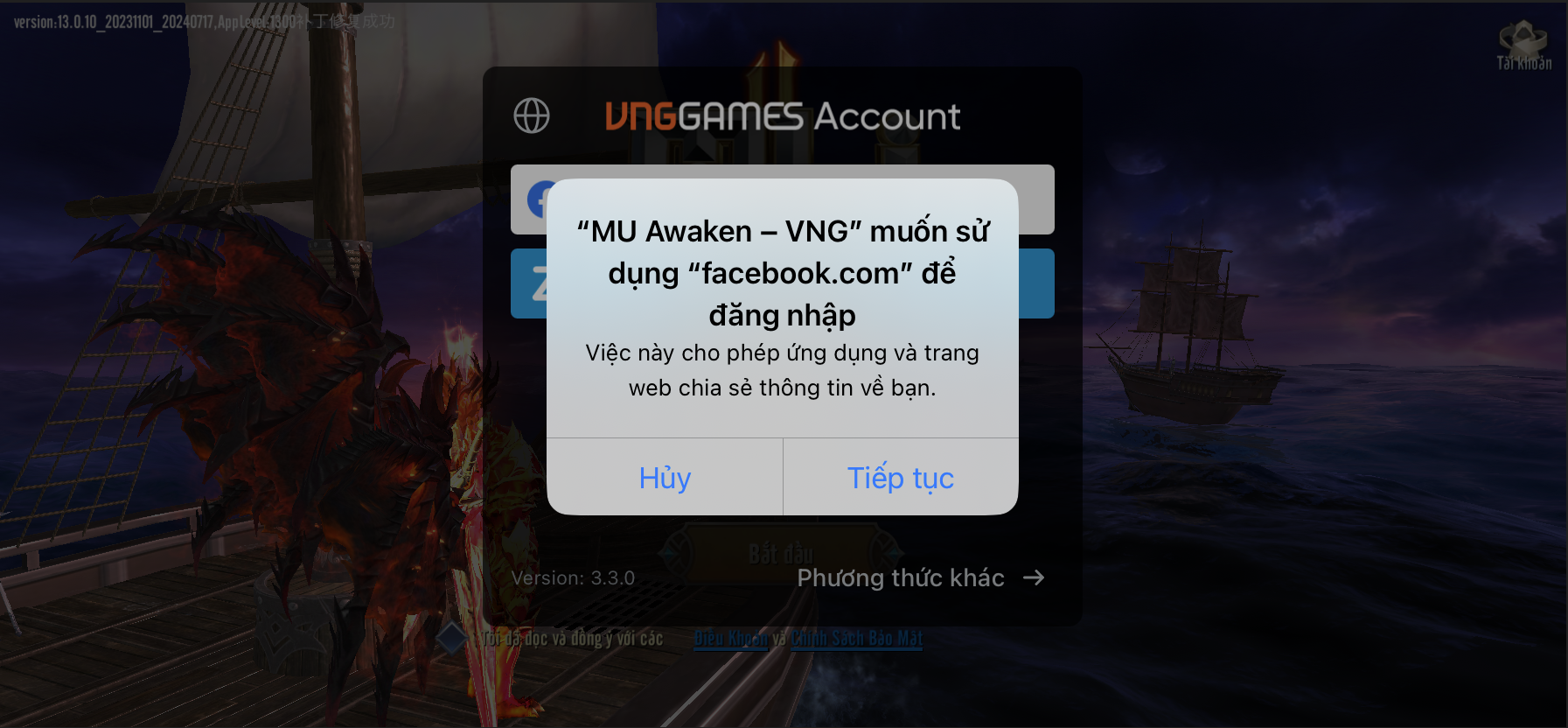 Biểu hiện của lỗi: Mutizen đăng nhập cổng Facebook qua thiết bị IOS, sau khi kết nối tài khoản facebook xong không trở về được lại game, hoặc bị crash game, có thể sử dụng các cách khắc phục sau đây: