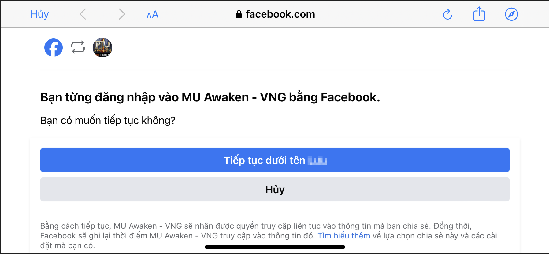 Bước 4: Quá trình ở bước 3 sẽ mở trình duyệt Safari, tiến hành liên kết tài khoản: