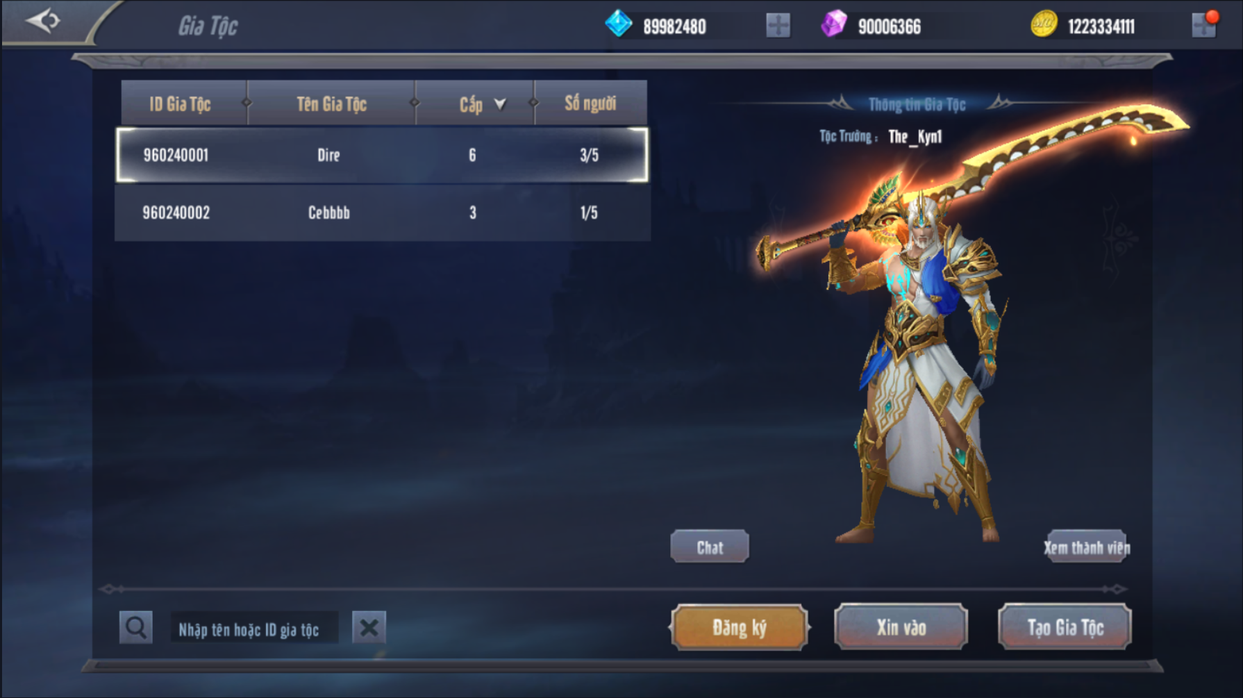 Người chơi cũng có thể Xin vào tất cả các gia tộc có thể gia nhập bằng cách nhấp Đăng Ký.
