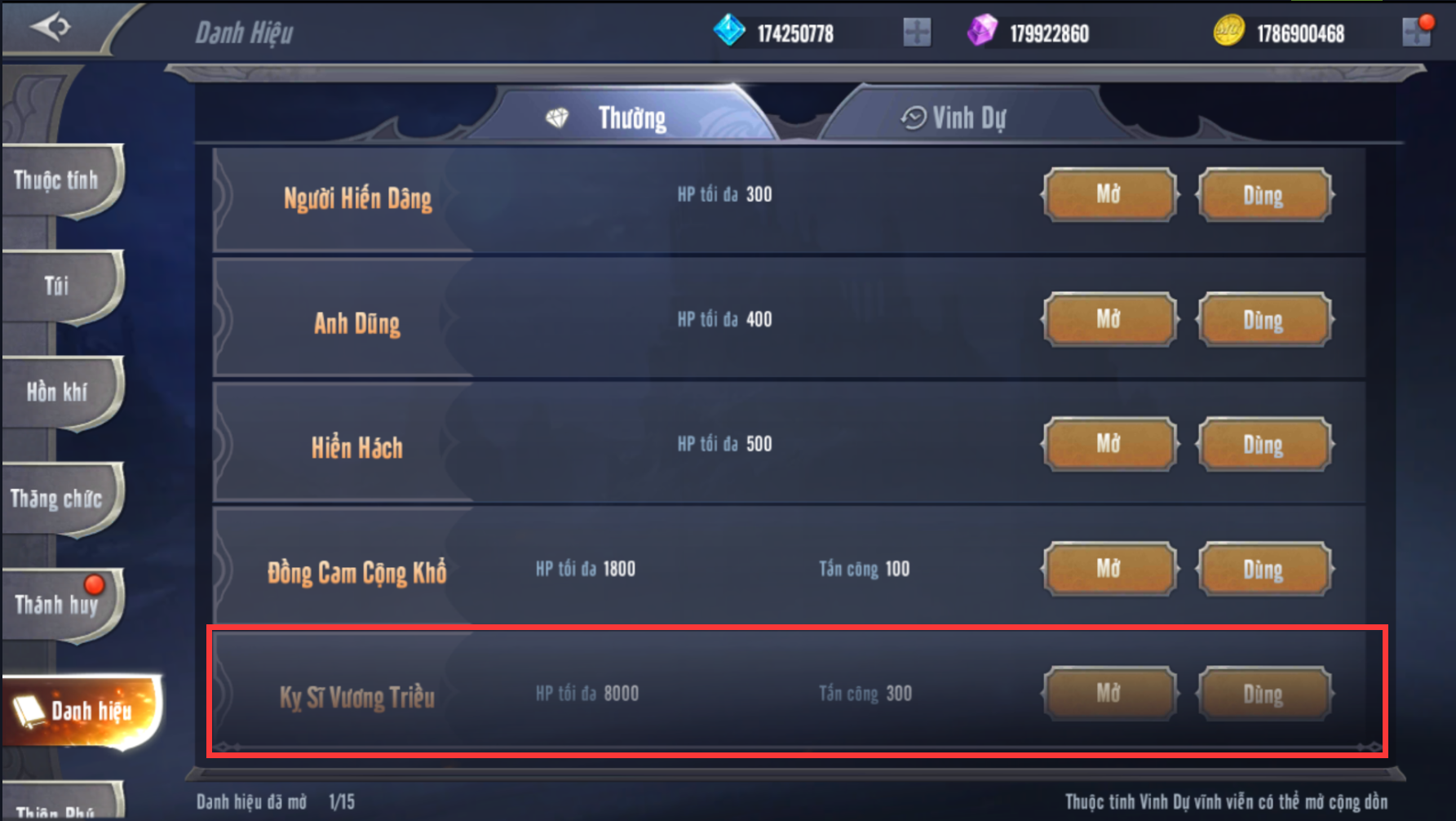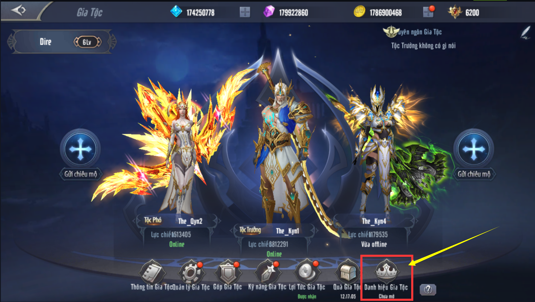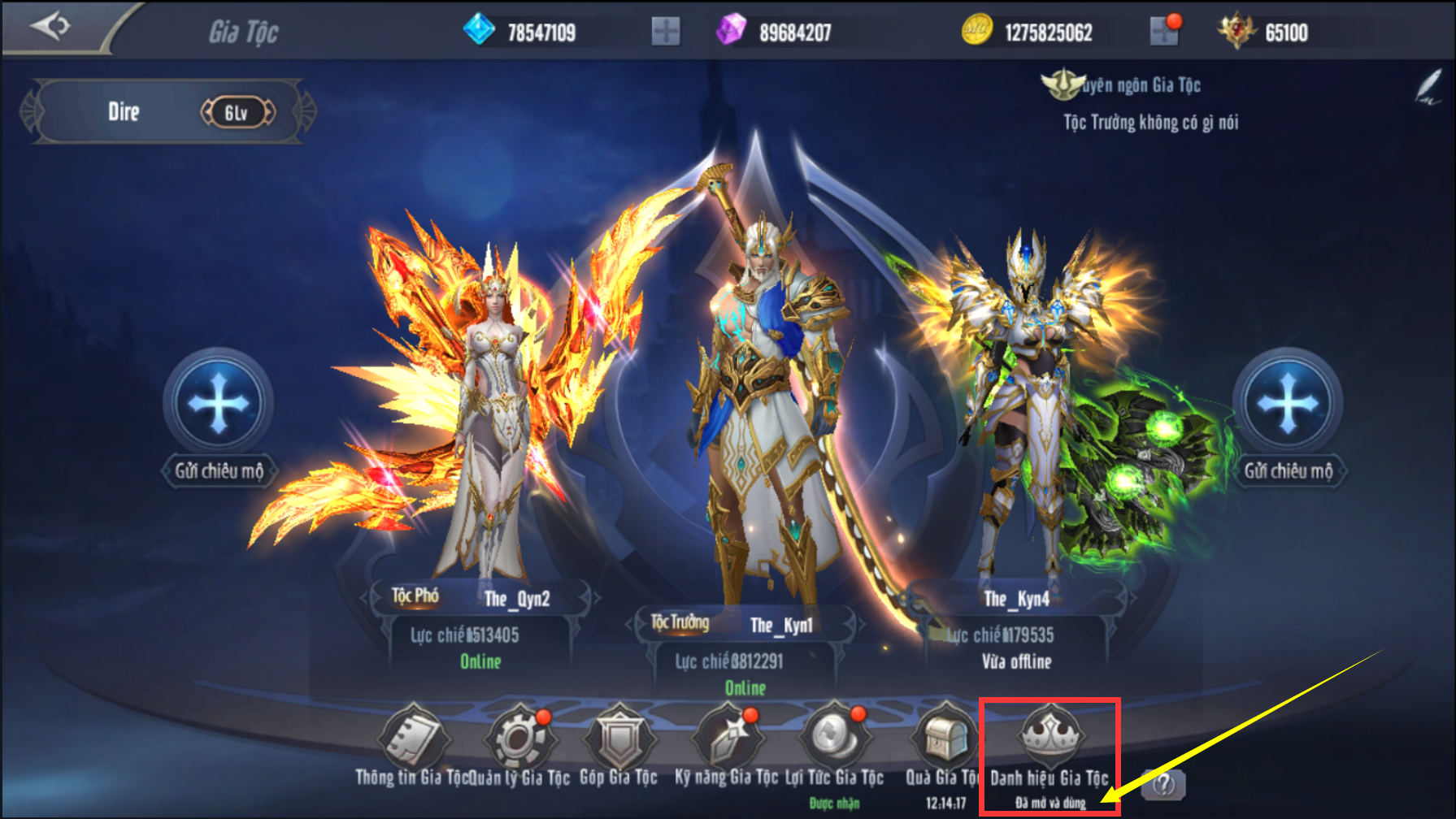 Sau khi Mở và Dùng, mục Danh Hiệu Gia Tộc sẽ xuất hiện trạng thái này.