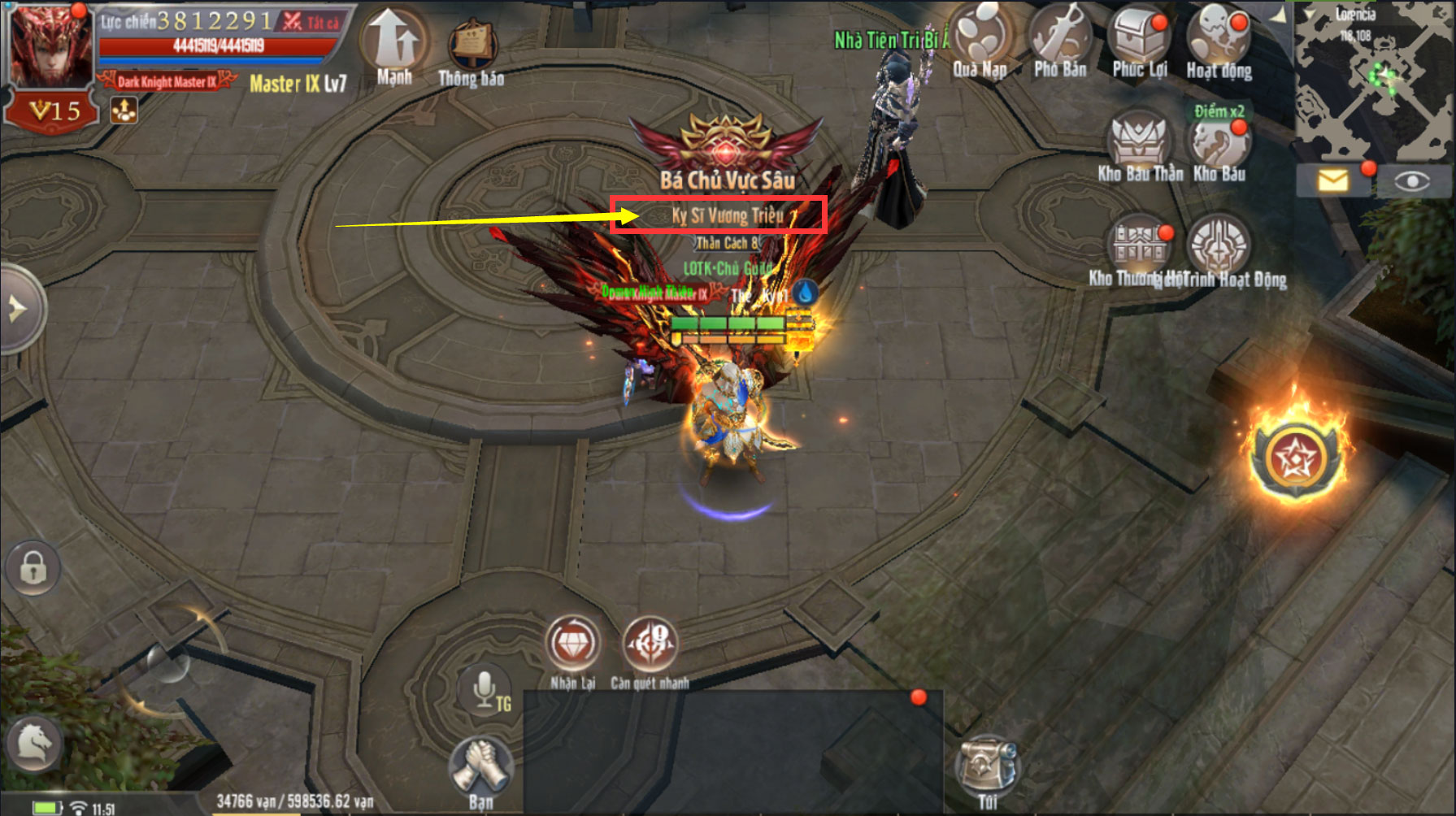 Góc bên trái trên cùng là tên và cấp hiện tại của Gia Tộc.