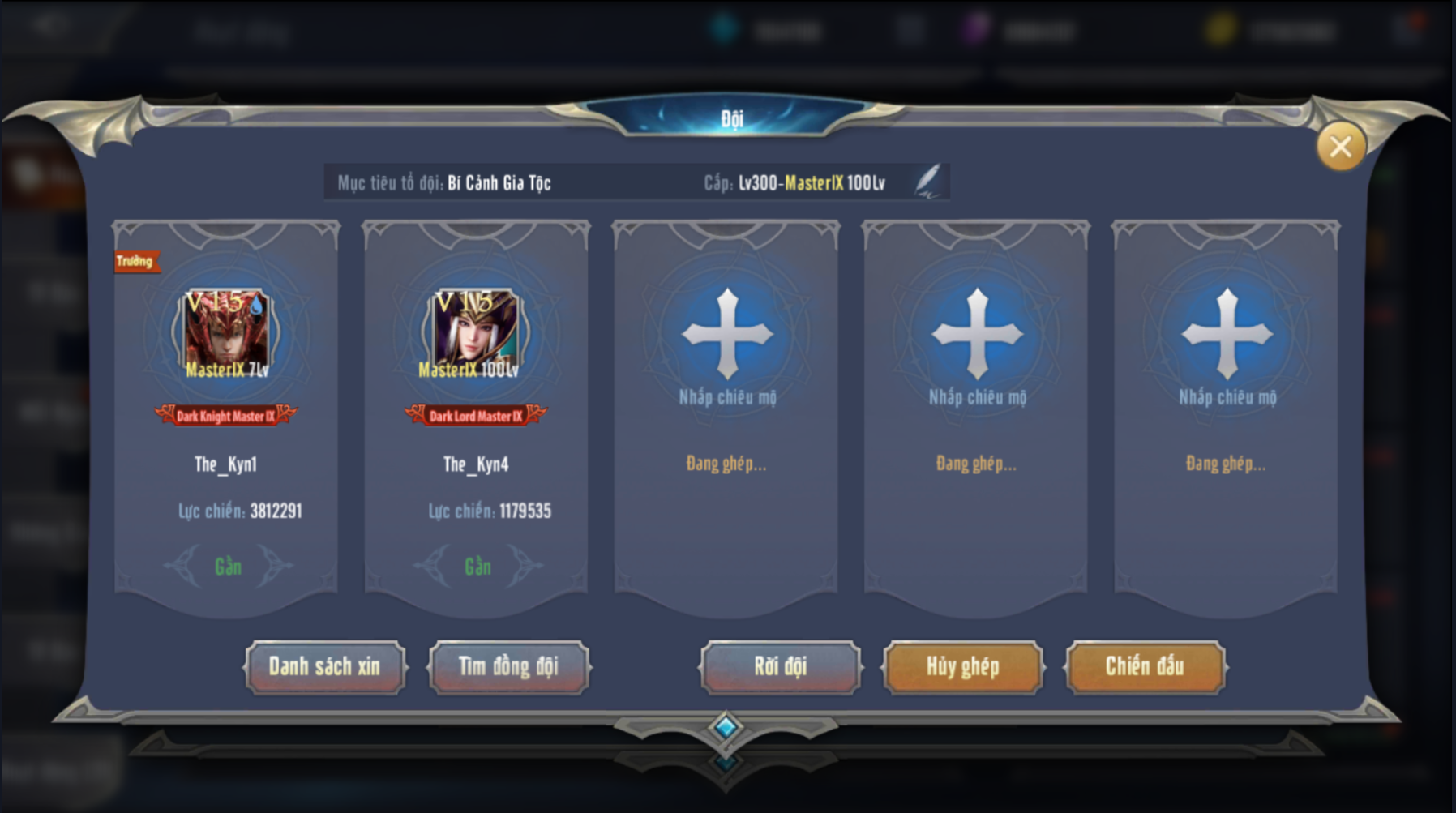 Đối với Tổ Đội, cần tập hợp từ 2 người trở lên và phải chung một Gia Tộc.