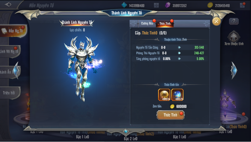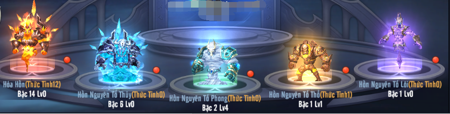 Tính năng Thức Tỉnh Hồn Nguyên Tố cho phép người chơi thức tỉnh 5 Hồn Nguyên Tố nhỏ (Hỏa – Thủy – Phong – Thổ - Lôi) và Thánh Linh Nguyên Tố.