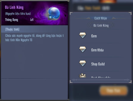 Đá Linh Năng: có thể sở hữu vật phẩm thông qua Gem Shop, Shop Gem Khóa, Shop Guild, Hoạt Động Nhận, Giao Dịch – Mua, Shop Chiến Công. Giá mặc định 40 Gem/ Vật phẩm hoặc 40 Gem Khóa/Vật Phẩm (Giới hạn 200)
