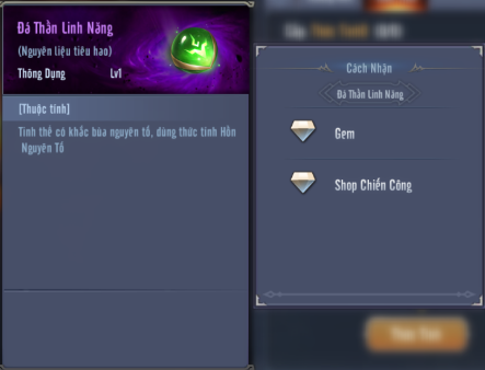 Đá Thần Linh Năng: có thể sở hữu vật phẩm này bằng Gem Shop, Shop Chiến Công. Giá mặc định 40 Gem/Vật Phẩm.