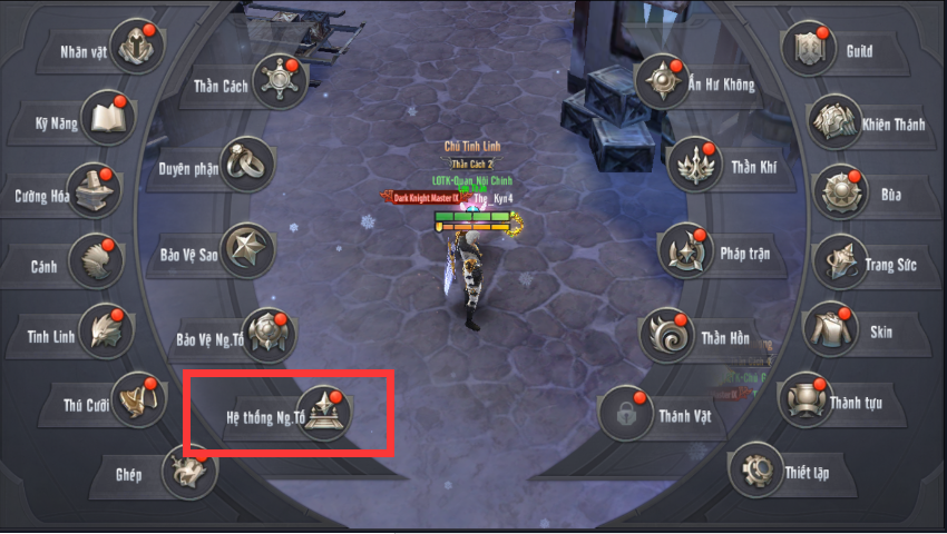Để vào chức năng thức tỉnh, bấm Hệ Thống Nguyên Tố trên thanh menu chức năng.