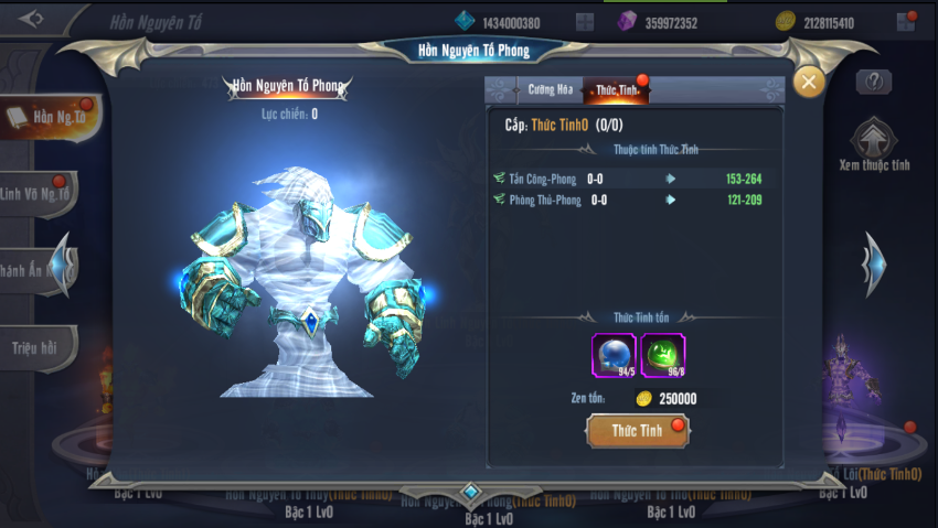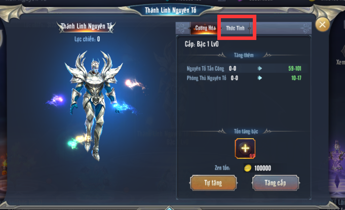 - Đầu tiên là nâng Bậc cho Hồn Nguyên Tố đó, khi đã thu thập đủ nguyên liệu, bấm vào Thức Tỉnh.