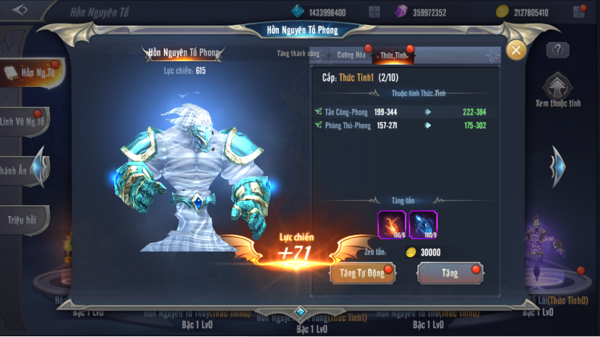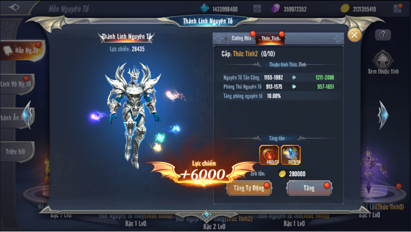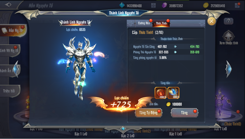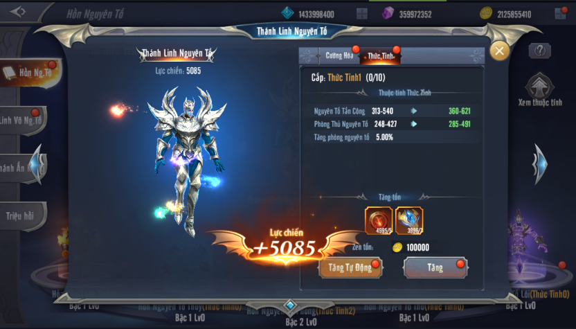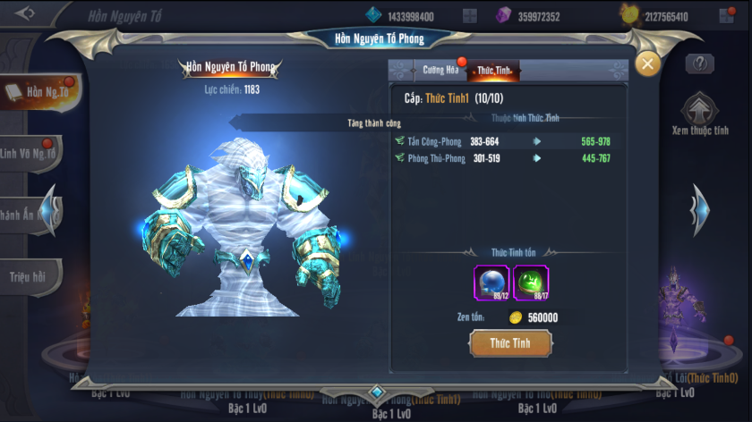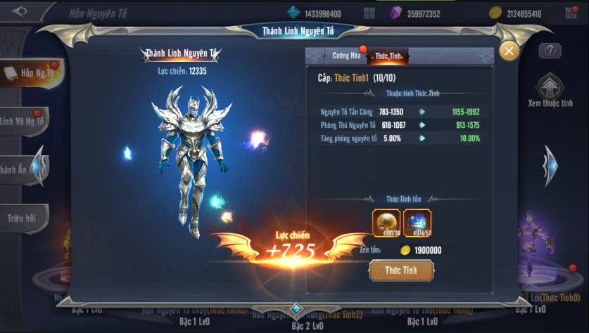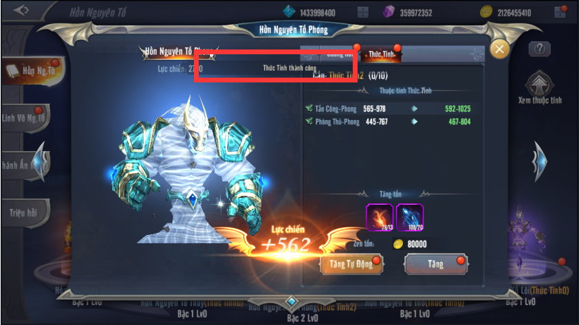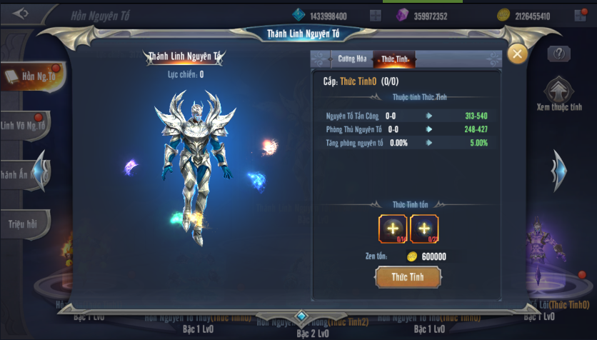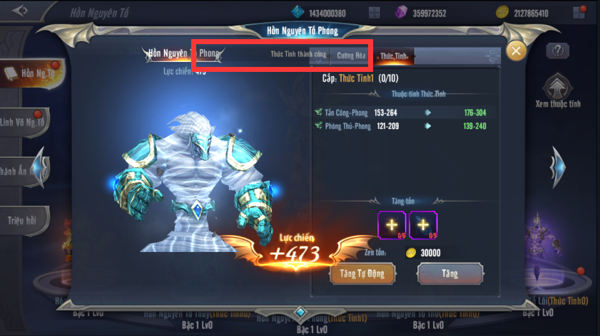 Thức tỉnh 5 Hồn Nguyên Tố sẽ cho phép người chơi có thêm các chỉ số Công – Phòng của nguyên tố đó.