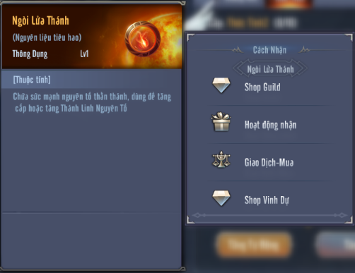 Ngòi lửa thánh: có thể sở hữu vật phẩm thông qua Shop Guild, Giao Dịch – Mua, Shop Vinh Dự hoặc thông qua các sự kiện,...