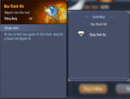 Bùa Thánh Khí: có thể sở hữu vật phẩm thông qua Shop Vinh Dự.