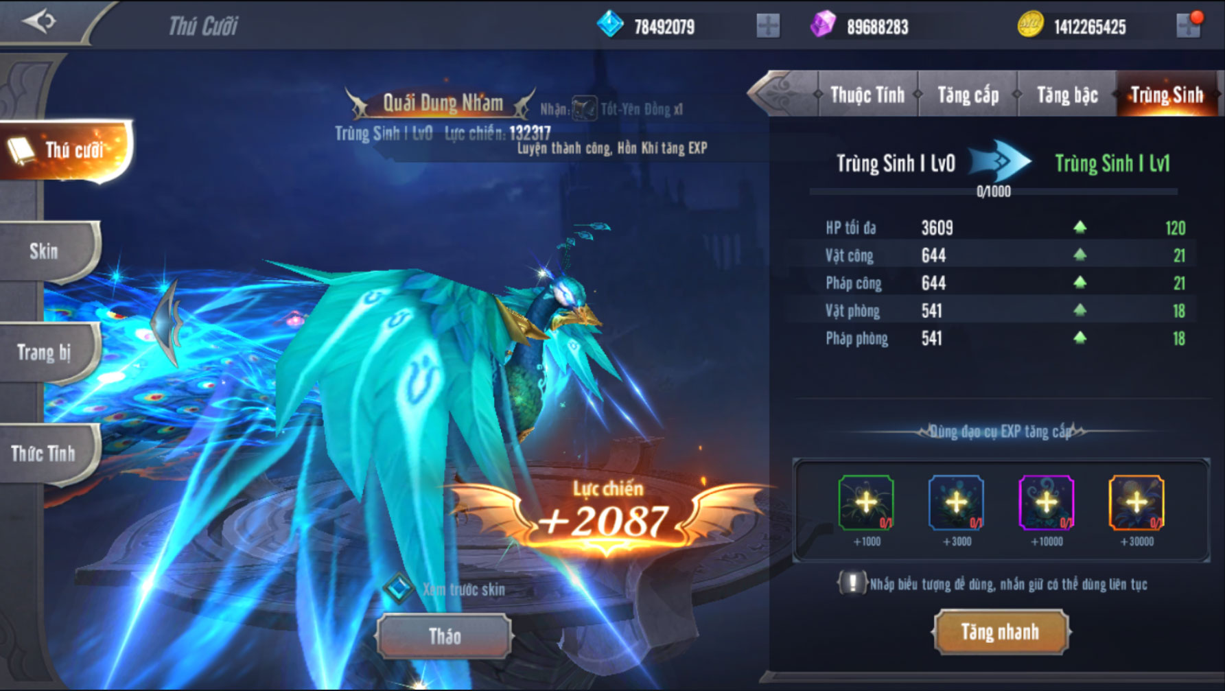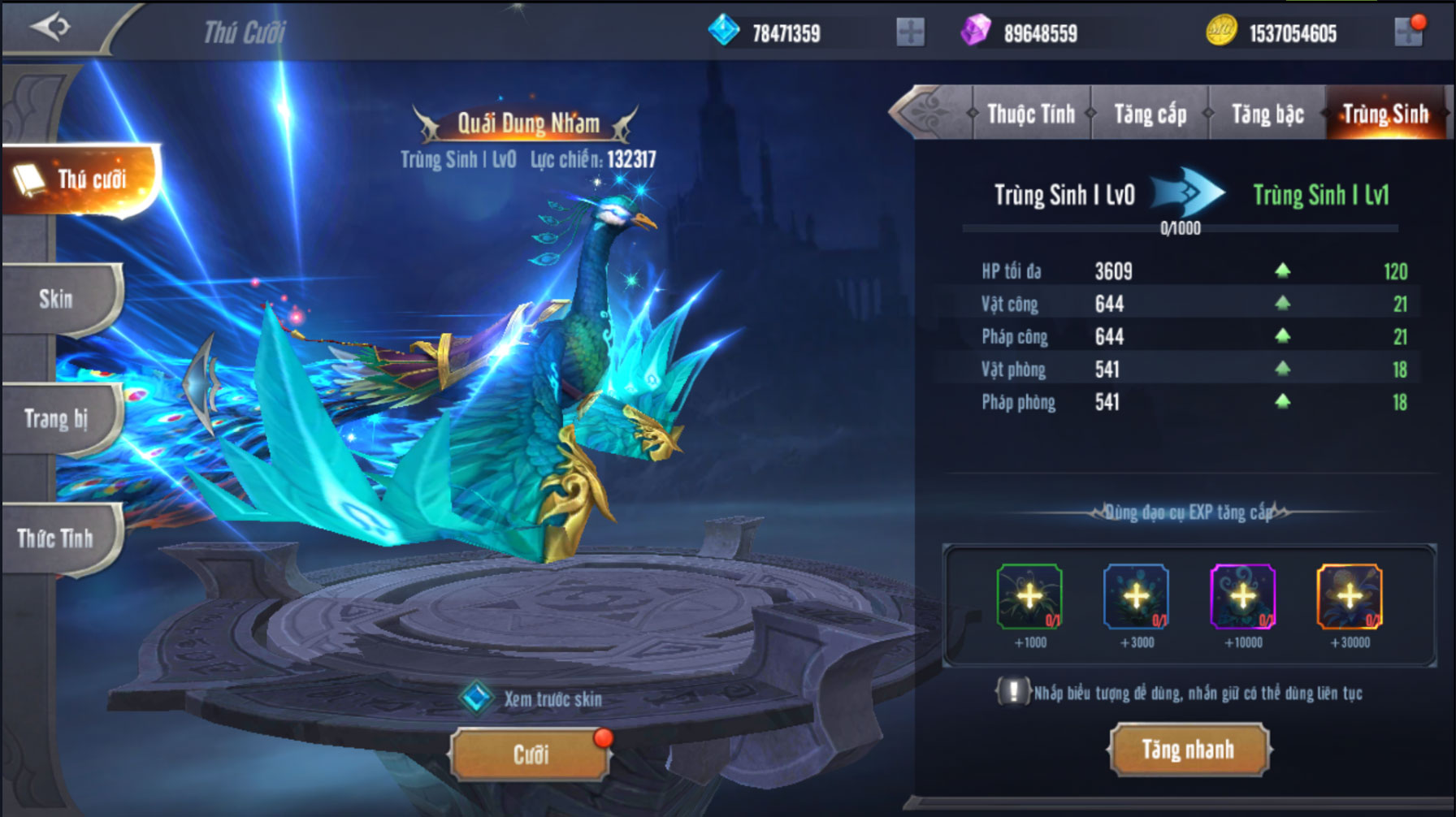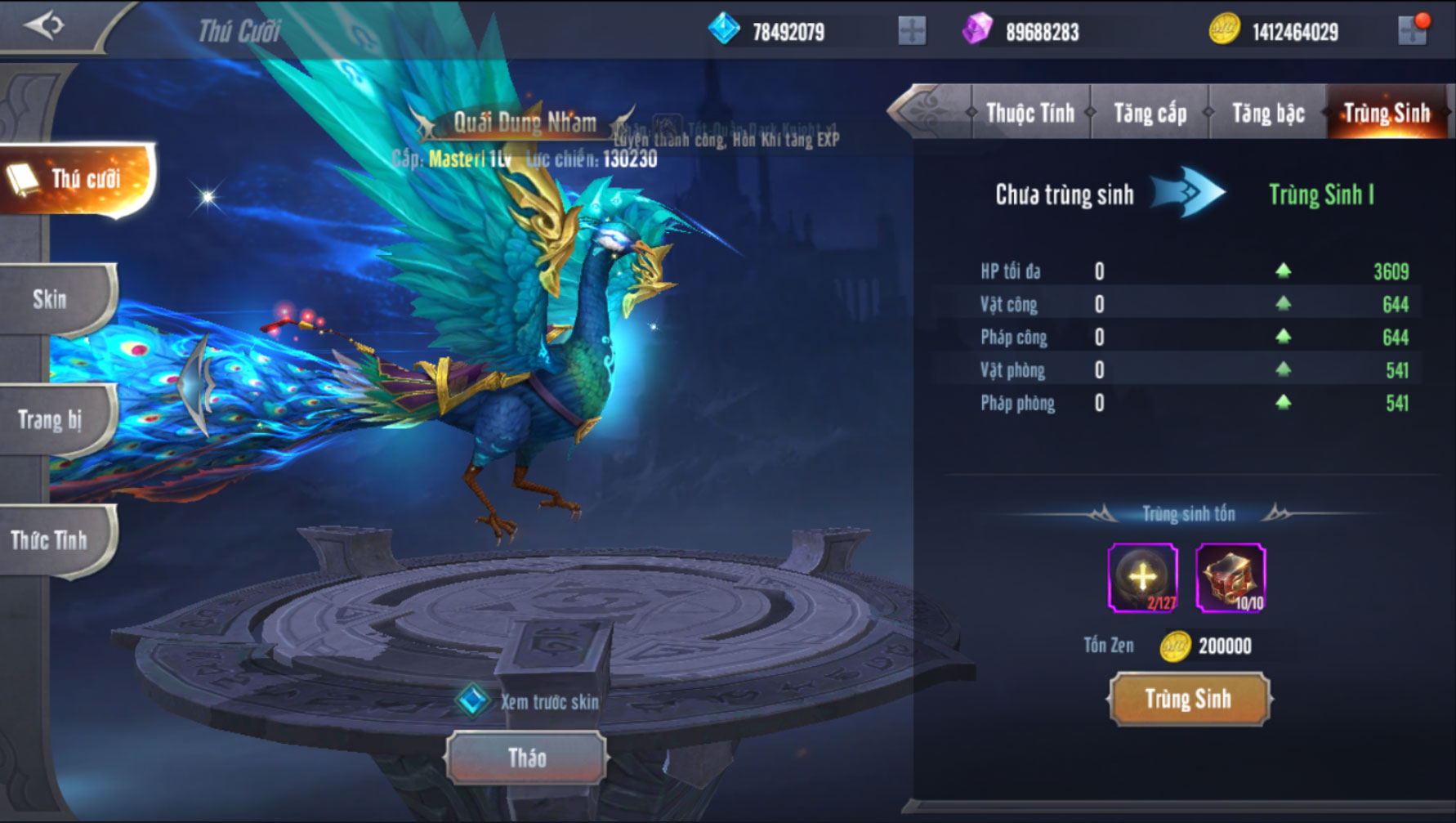 Tính năng Trùng Sinh Thú Cưỡi cho phép người chơi có thể tiếp tục thăng cấp cho thú cưỡi thông qua hoạt động Trùng Sinh (reset cấp cho Thú Cưỡi).