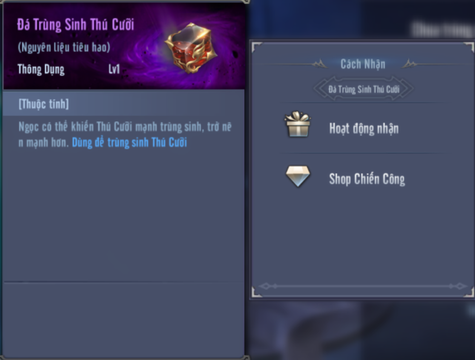 Đá Trùng Sinh Thú Cưỡi: Có thể sở hữu thông qua Hoạt Động Nhận, Shop Chiến Công…